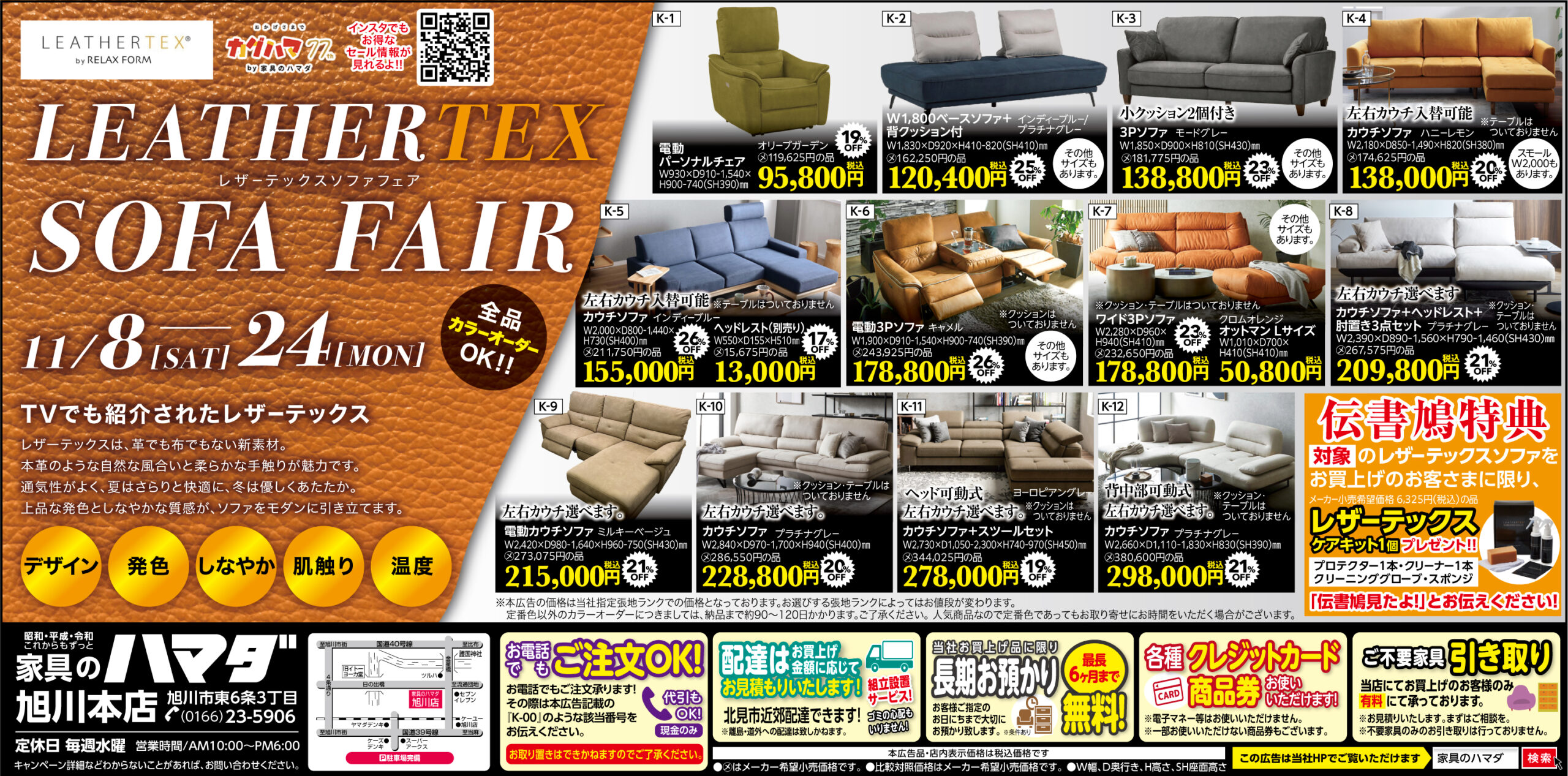 伝書鳩掲載 家具のハマダ旭川本店最新広告